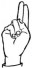 На ћирилици написано ПЕТАК ВИРИЈЕВИЋ састоји се из 14 слова [?]. Исписано ћириличном једноручном азбуком за глувонеме: